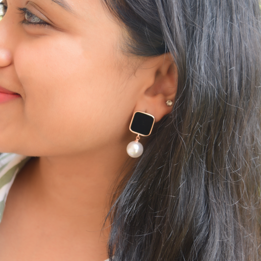 Make a smart style statement with our Black Pearl Drops. These earrings have shiny black pearls and a sleek finish that looks great with any outfit. They are anti-tarnish, lightweight, and comfortable for long wear. Perfect for parties, office, or casual outings. Shop these trendy earrings for women online now.