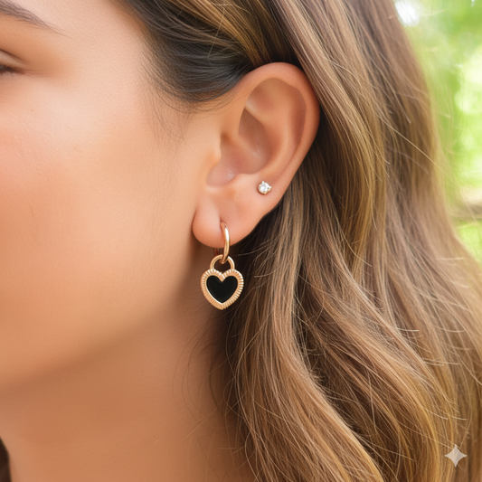 Make a stylish statement with our B&W Heart Hoops. These anti-tarnish earrings feature bold black and white hearts and shiny rose gold hoops for a trendy look. They are lightweight, tarnish free, and easy to wear all day. Perfect jewellery who love unique designs. Pair them with casual or party...