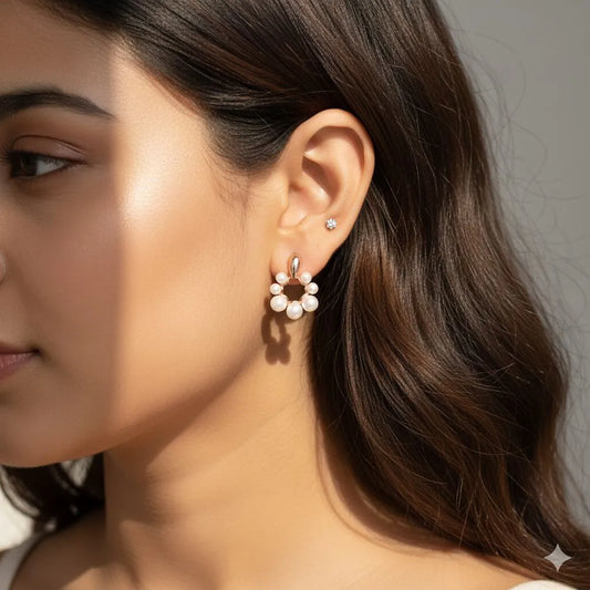 Bring shine to every moment with our Pearl Swirl Earrings. These anti-tarnish earrings combine a swirl of sparkling stones with a classic pearl design. They are lightweight, tarnish-free, and easy to wear all day. Perfect jewellery for women who love timeless style with a hint of sparkle. Pair them with...